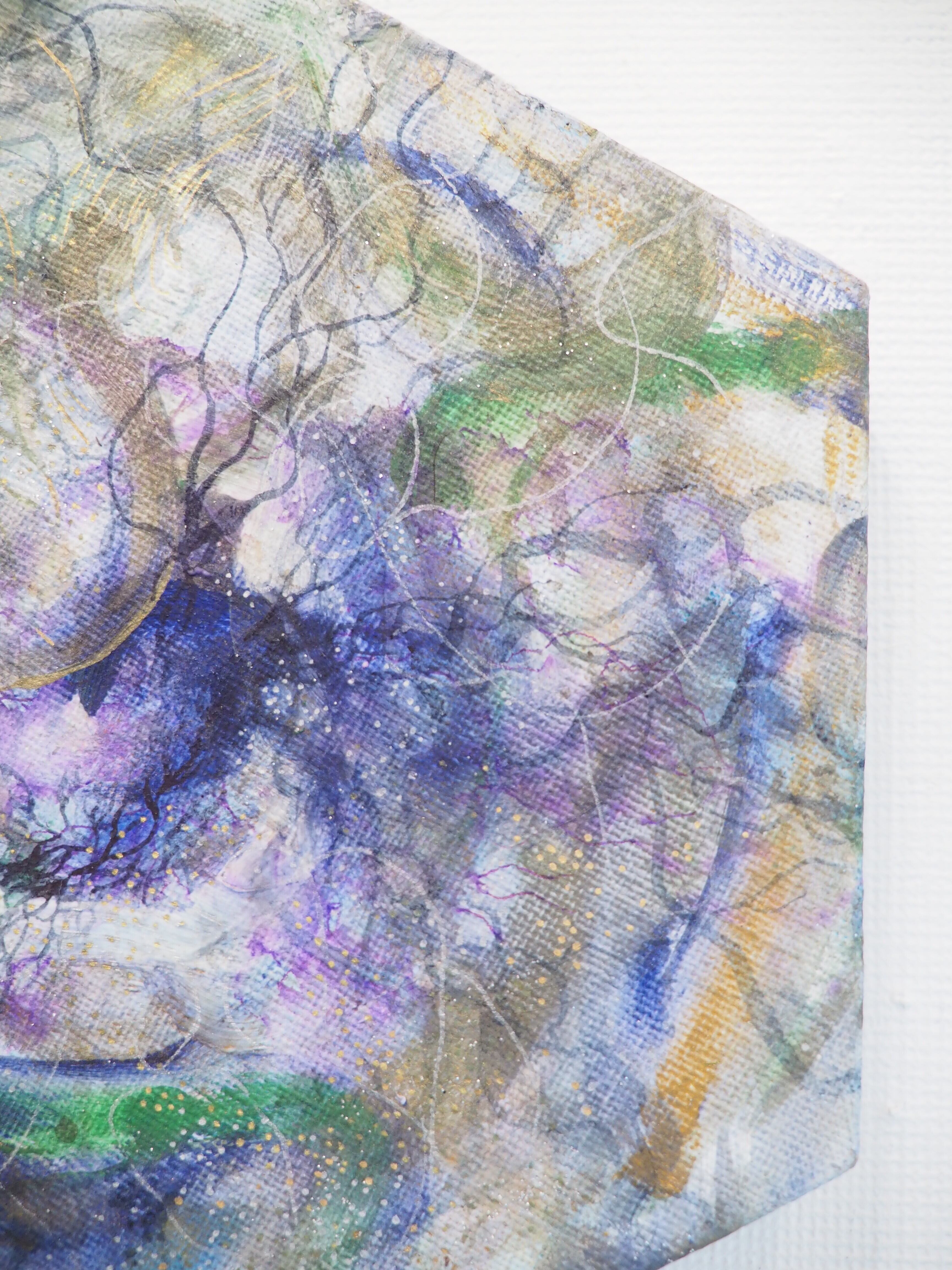 175x200mm 藍、水彩色鉛筆、アクリルガッシュ、ペン ✴︎ あおの音に身を委ね 源に共鳴する そこから始まる 響奏の物語り