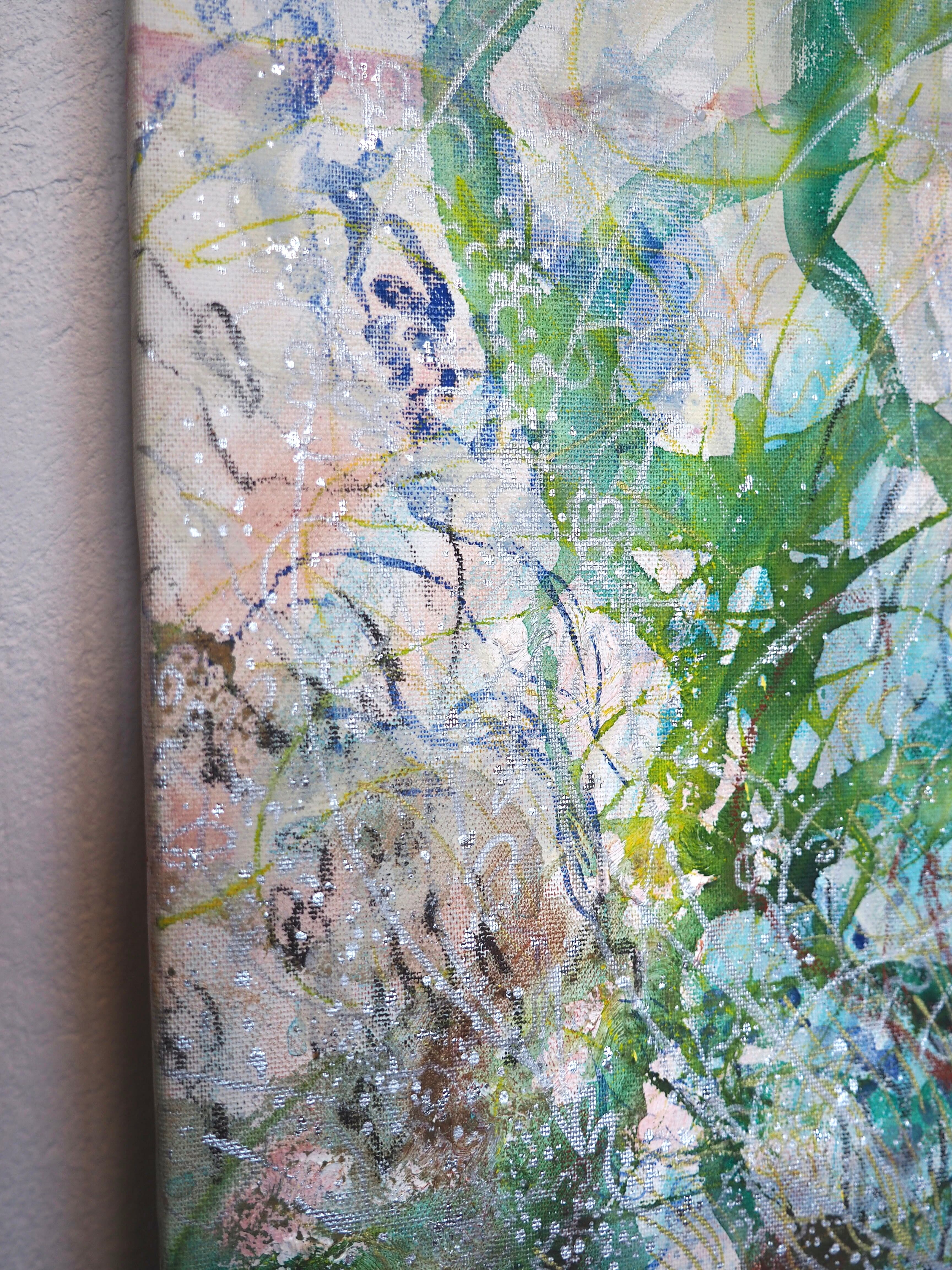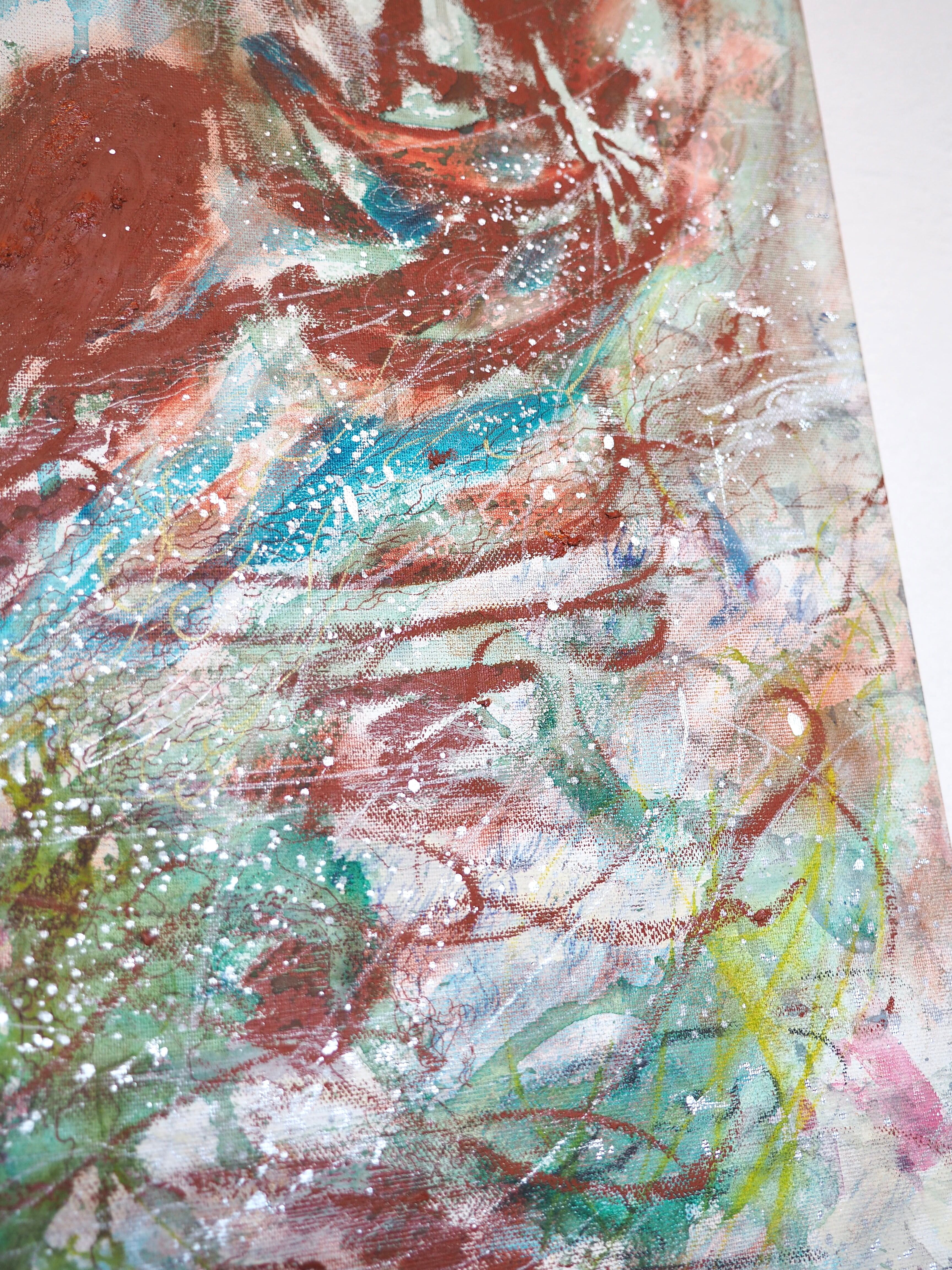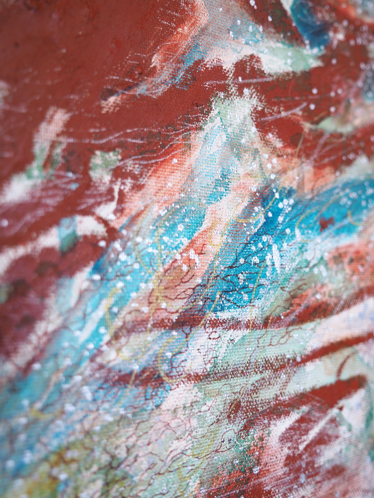 オイルスティック、油彩、ペン、オイルパステル、アクリル、アクリルガッシュ、ジェッソ、水彩色鉛筆、キャンバス
