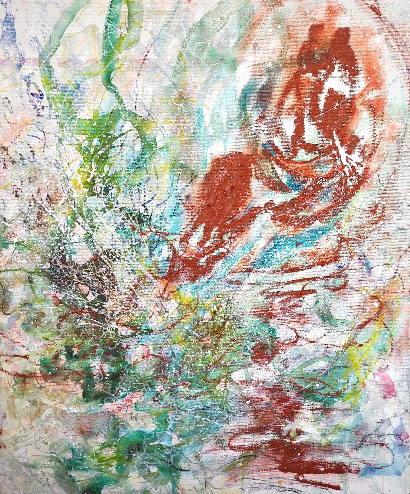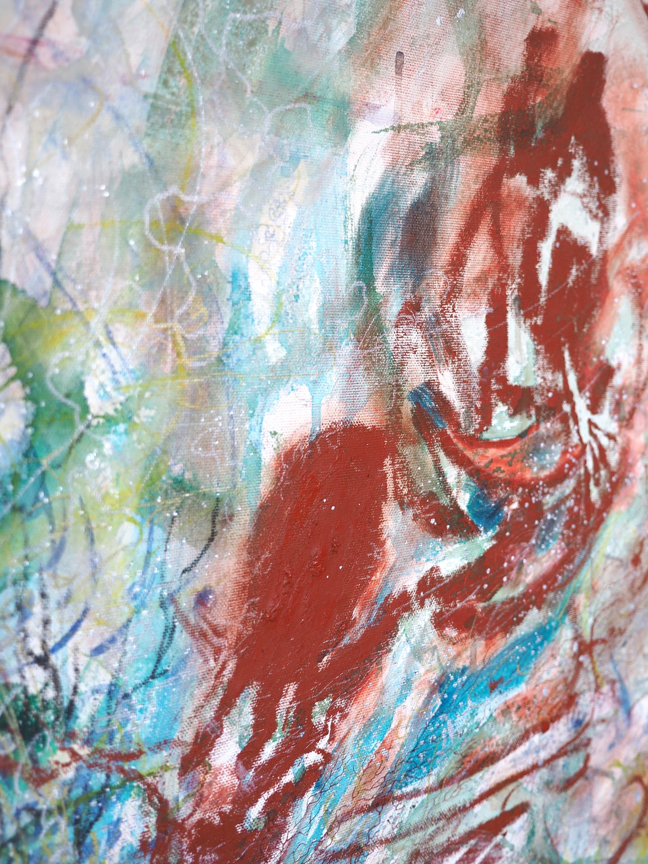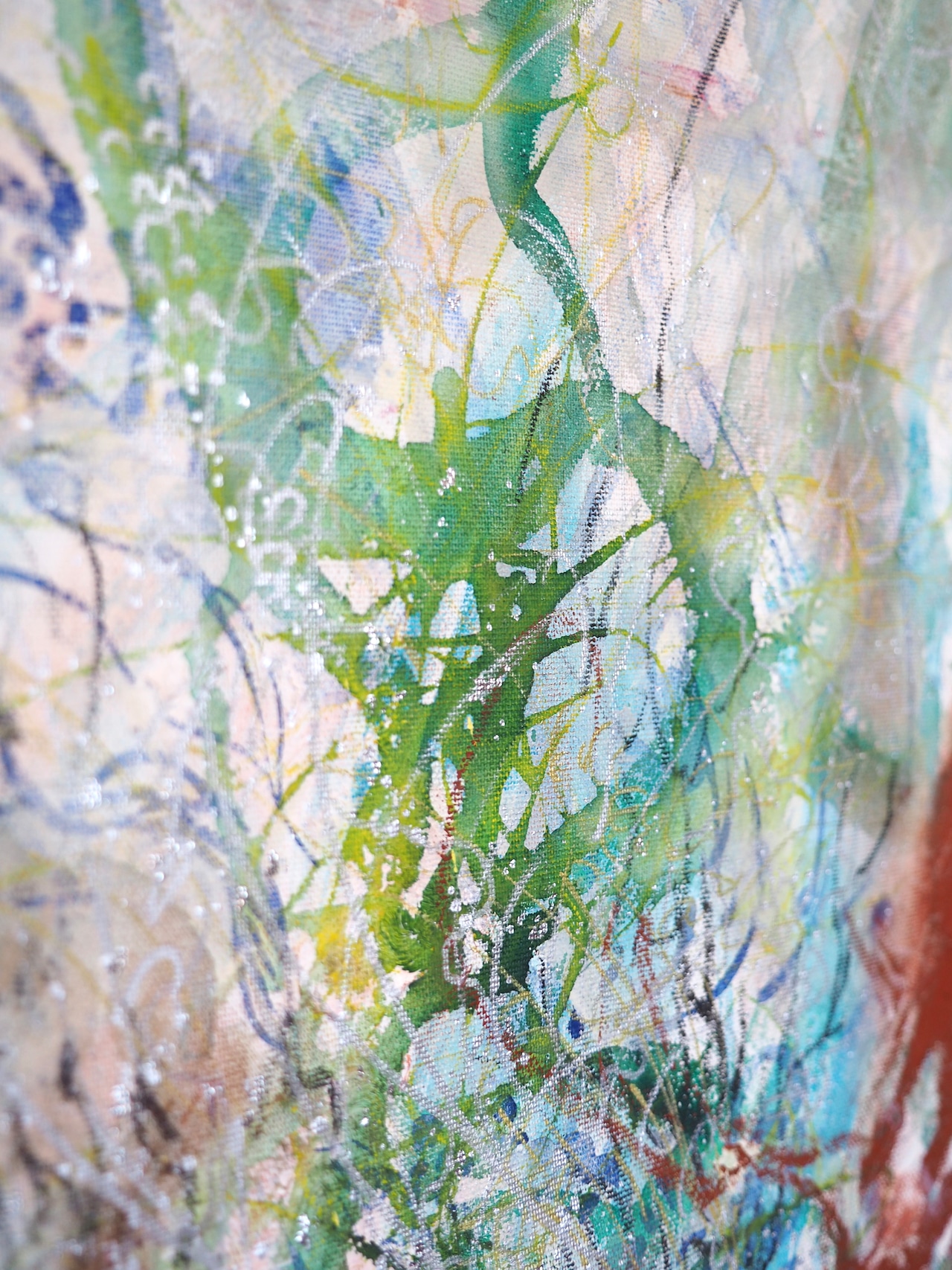 Oil stick, oil, pen, oil pastel, acrylic, acrylic gouache, gesso, watercolor pencil, canvas