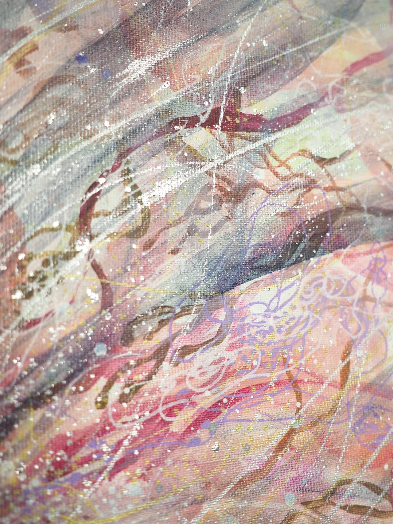 アクリルガッシュ、ペン、水彩色鉛筆、キャンバス