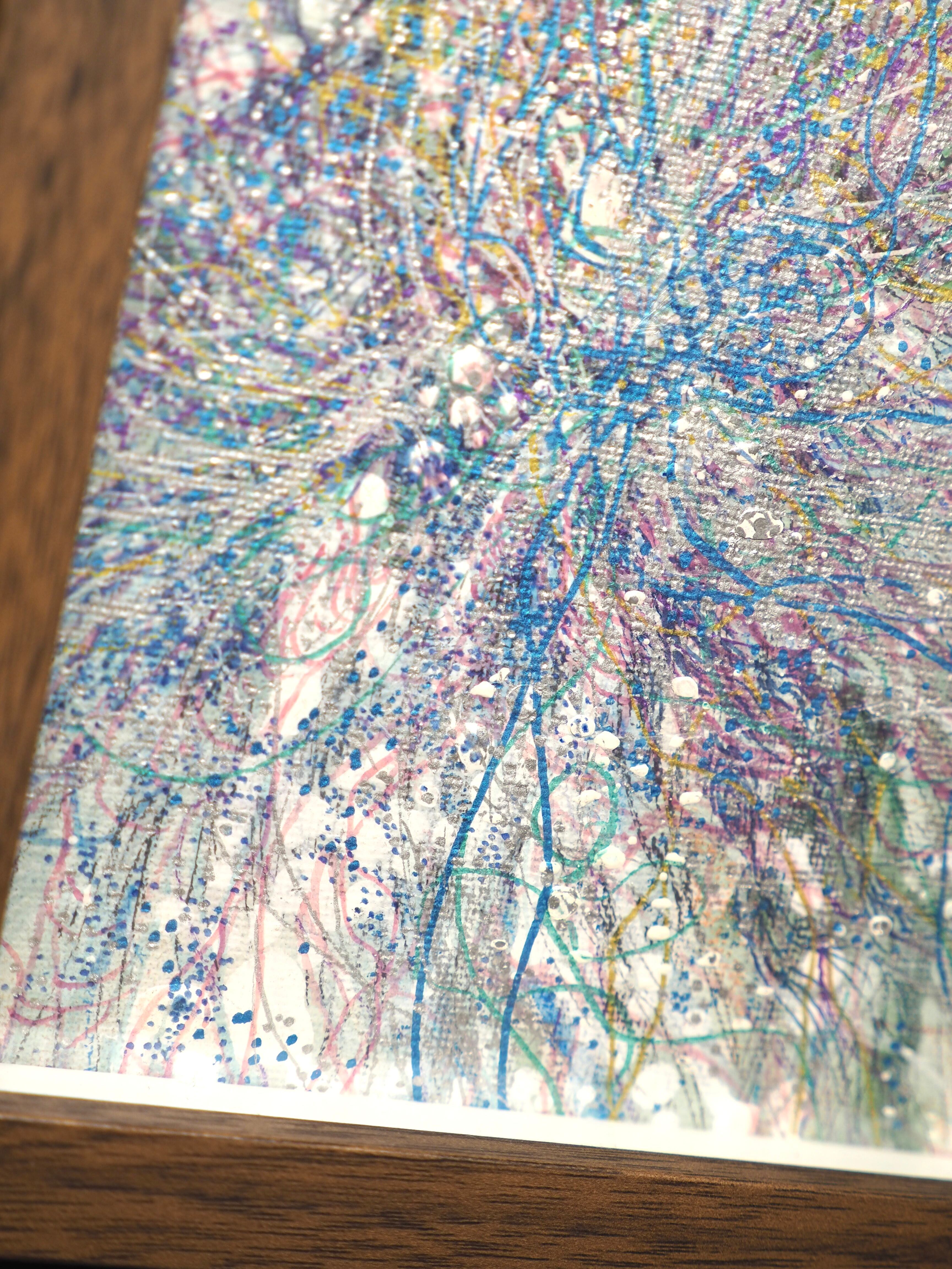 ペン、アクリルガッシュ、ジェッソ、キャンバスボード、額縁